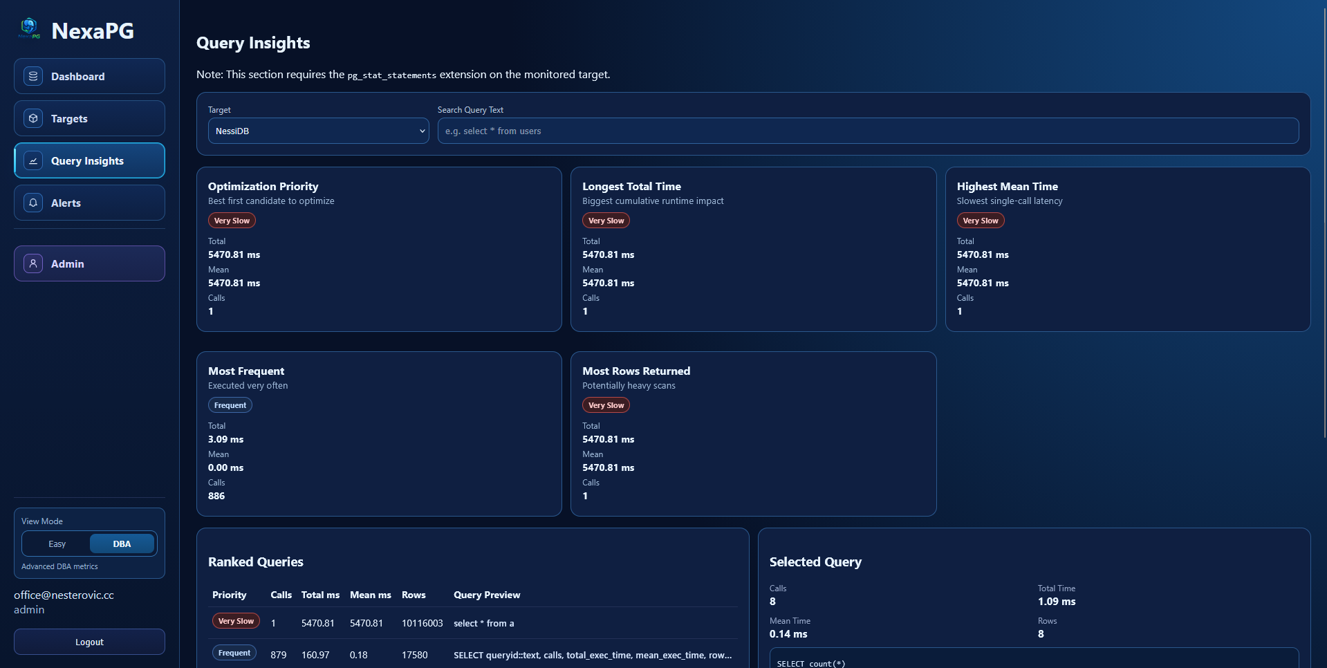 Updated the README to include a centralized NexaPG logo and detailed UI previews of key application sections such as dashboard, targets management, query insights, and others. Added new screenshot assets to the `docs/screenshots` directory to support the visual updates.