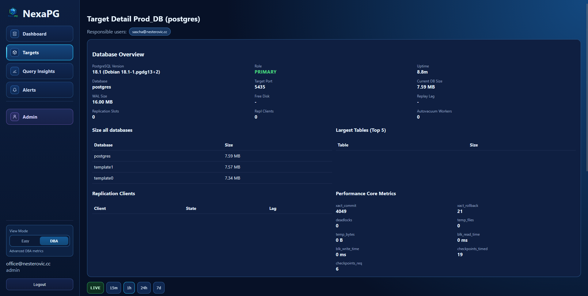 Updated the README to include a centralized NexaPG logo and detailed UI previews of key application sections such as dashboard, targets management, query insights, and others. Added new screenshot assets to the `docs/screenshots` directory to support the visual updates.